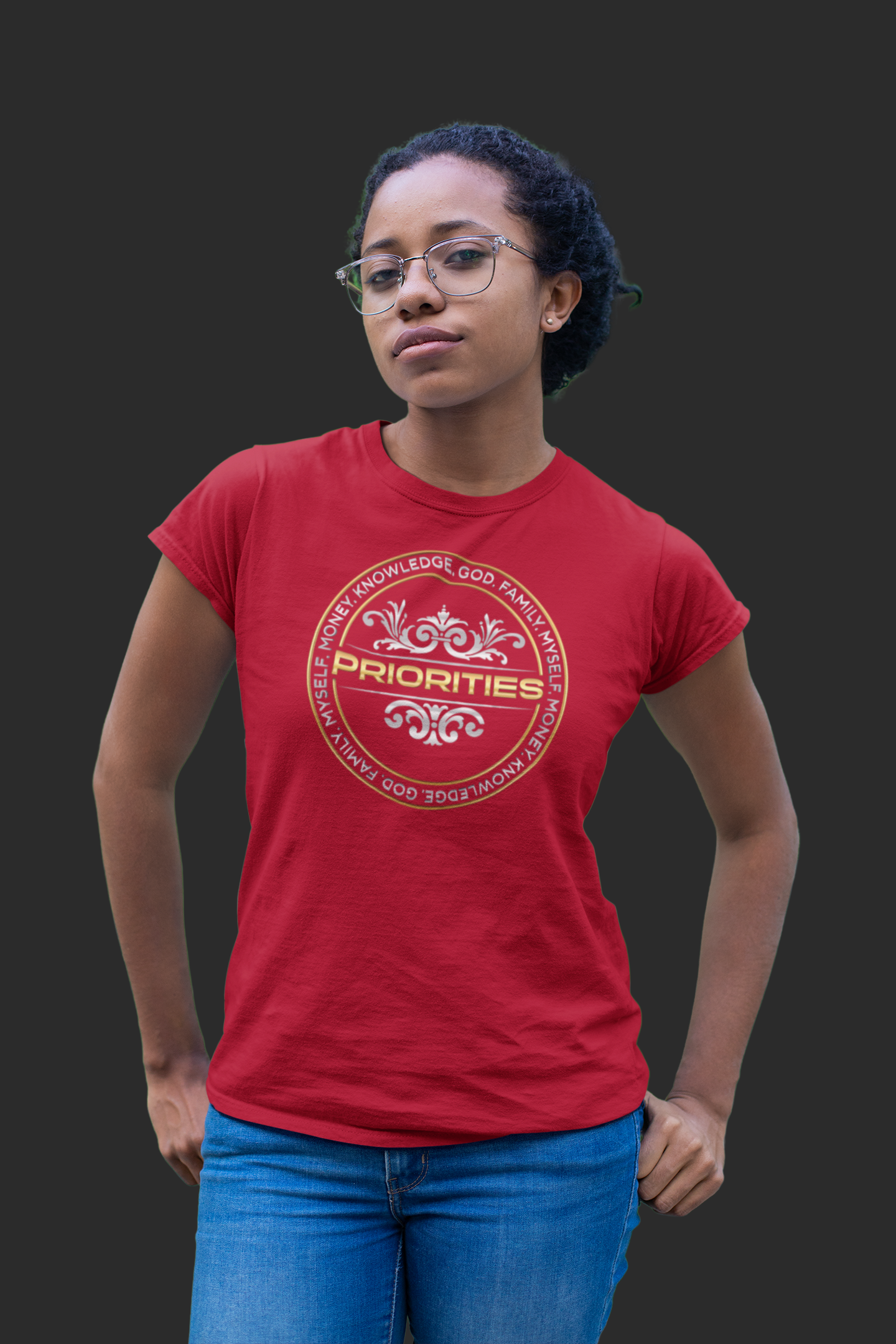 PRIORITIES is a new Global movement. This dynamic brand represents number one PRIORITIES that drives most people today. GOD, FAMILY, SELF, MONEY & KNOWLEDGE. Join the movement now & represent your PRIORITIES.